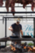 Open Fire Co of New Orleans is an expression of open fire cooking with an emphasis on suspension and hanging BBQ. New Orleans-based open fire chef, cookbook author, and world traveler Mark Stevens Roncoli & friends specialize in outdoor events that invite guests into a magically primitive world where all food is cooked with coals, fire and ash, without the use of electricity.